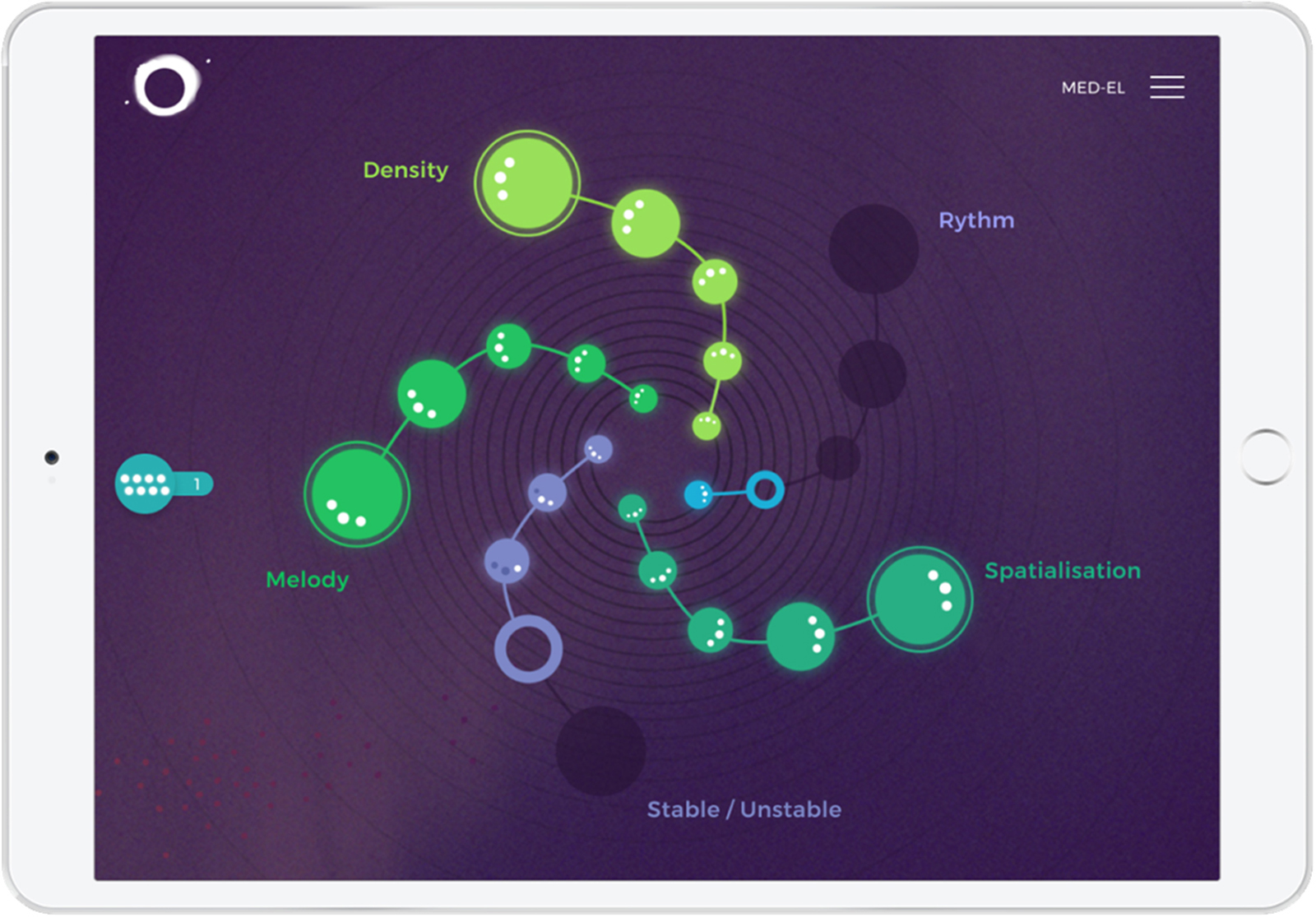 The listener is asked, for example, if a sound example sounded stable or unstable instead of using music terminology like “consonant” and “dissonant.” The goal is to explore the complex sound creations, which are used as building blocks for music. When starting an exercise, sound examples are given to familiarize the listener with different concepts. Gamification, repetition, and visual reinforcement are used to engage and support a successful learning process.